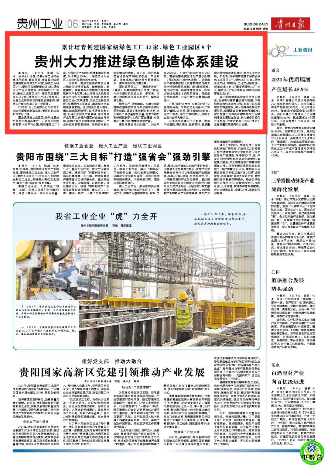 2022年1月,工信部辦公廳公布了2021年度綠色制造名單,貴州多家企業和開發區上榜。