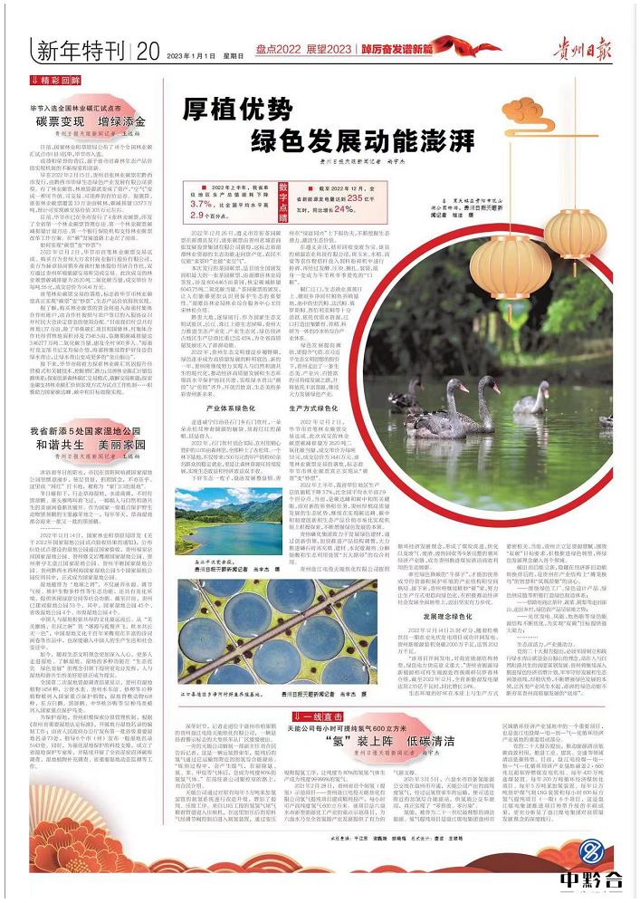 2022年,貴州生態文明建設步履鏗鏘,綠色逐步成為高質量發展的鮮明底色。新的一年,貴州將繼續努力實現人與自然和諧共生的現代化,推動經濟高質量發展和生態環境高水平保護協同共進,實現綠水青山“顏值”與“價值”齊升,開創百姓富、生態美的多彩貴州新未來。
