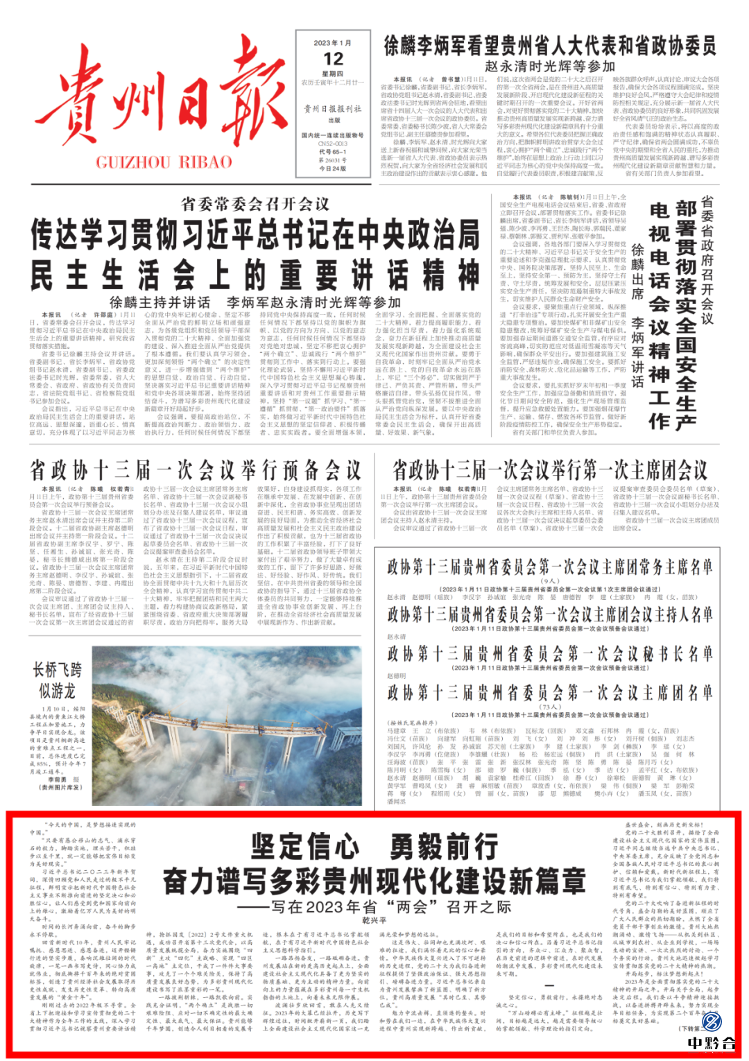 剛剛過去的2022年極不尋常。全省上下把迎接和學習宣傳貫徹黨的二十大精神作為全年工作的主線,深入學習貫徹習近平總書記視察貴州重要講話精神,搶抓國發〔2022〕2號文件重大機遇,成功召開省第十三次黨代會,以高質量發展統攬全局,奮力實施圍繞“四新”主攻“四化”主戰略、實現“四區一高地”主定位,干成了一件件大事要事,攻克了一個個難關險關,保持了高質量發展良好態勢,為多彩貴州現代化建設書寫了濃墨重彩的一筆。
